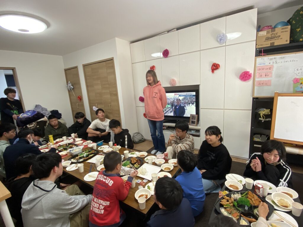 高校を卒業して就職する子、中学・高校へ入学する子たちの壮行会を行いました。毎日来てくれていたのに会えなくなるのは寂しいですが、それぞれの道で頑張って欲しいです。疲れたり皆に会いたくなったらいつでも遊びに来てね!